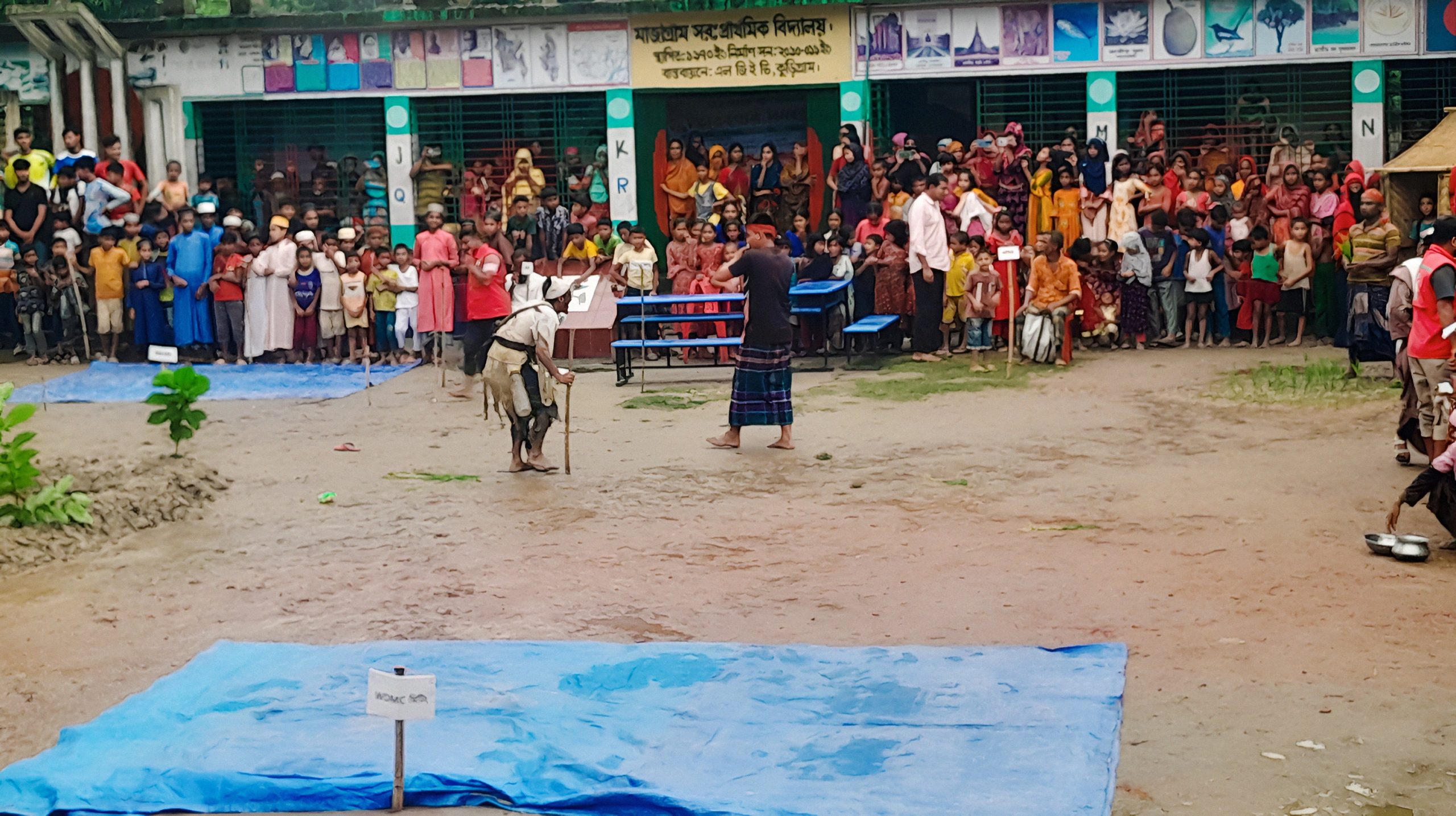 কুড়িগ্রামে “পারিবারিক ও সামাজিক পর্যায়ে বন্যা প্রস্তুতি ও দুর্যোগ ঝুঁকিহ্রাস বিষয়ক মাঠ মহড়া” অনুষ্ঠিত হয়েছে।