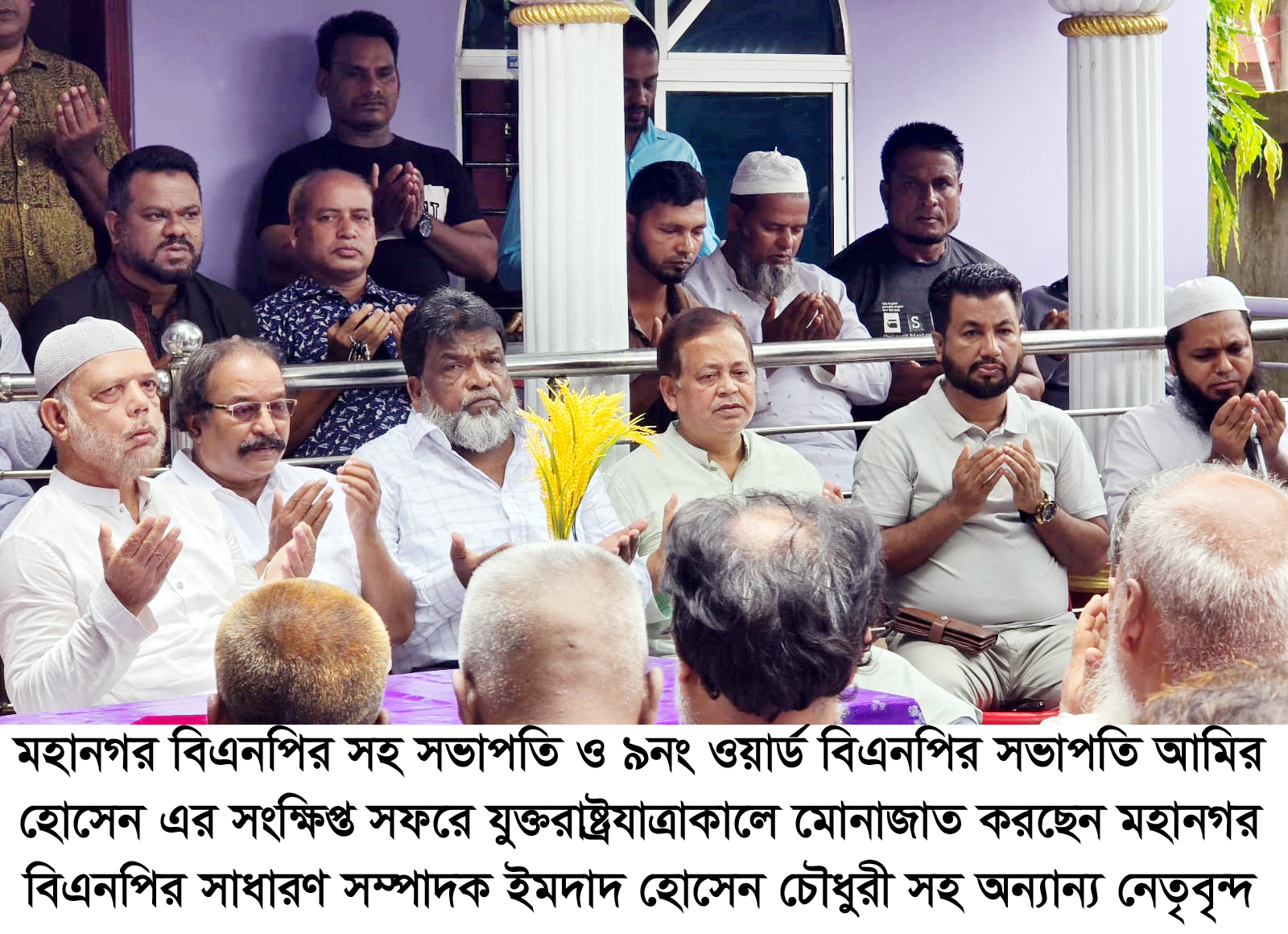 তিনি মঙ্গলবার (১ জুলাই) মহানগর বিএনপির সহ সভাপতি ও ৯নং ওয়ার্ড বিএনপির সভাপতি আমির হোসেন এর সংক্ষিপ্ত সফরে যুক্তরাষ্ট্রযাত্রাকালে উপরোক্ত কথাগুলো বলেন তিনি।বিশেষ অতিথির বক্তব্য রাখেন, সিলেট মহানগর বিএনপির সাবেক আহ্বায়ক ও প্যানেল মেয়র আব্দুল কাইয়ুম জালালী পংকী। অন্যান্যের মধ্যে উপস্থিত ছিলেন ও বক্তব্য রাখেন, আমির হোসেন, ৯নং ওয়ার্ড বিএনপির সহ সভাপতি চানা মিয়া, সুফিয়ান আহমদ, মহানগর স্বেচ্ছাসেবক দলের সদস্য সচিব ও স্বেচ্ছাসেবক বিষয়ক সম্পাদক আফসর খান, ৩৮নং ওয়ার্ডের আহ্বায়ক শাহজাহান মিয়া, ৩৭নং ওয়ার্ডের আহ্বায়ক চান মিয়া বাচ্চু, রাজু মিয়া, ময়নুল হক চৌধুরী, কোতোয়ালী থানা স্বেচ্ছাসেবক দলের আহ্বায়ক কামরুল ইসলাম দীপু, সাইফুল ইসলাম, জালালাবাদ থানা স্বেচ্ছাসেবক দলের সদস্য সচিব মানিক মিয়া, যুগ্ম আহবায়ক রেজওয়ান আহমদ রনি, আব্দুল হাই মিয়া, আব্দুল আলিম, ৯ নং ওয়ার্ড বিএনপি যুগ্ম সাধারণ সম্পাদক এসএম শাহজাহান, সদস্য জমির আলী, মেহেদী হাসান নিজাম, আলী আকবর, এস কে সাব্বির, শোয়েব আহমদ, মিসবাহুর রহমান, রুবেল আহমদ প্রমুখ। বিজ্ঞপ্তি