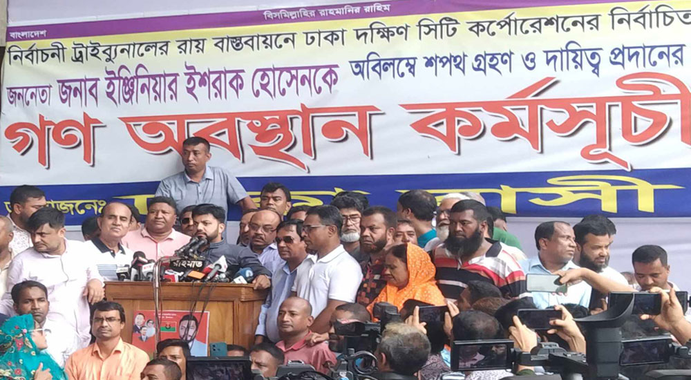 রোববার (১৫ জুন) বেলা সাড়ে ১১টায় কর্মসূচিতে যোগ দিয়ে ইশরাক হোসেন এ ঘোষণা দেন। এর আগে সকাল সাড়ে ১০টার দিকে নগরভবনে ইশরাক সমর্থকদের অবস্থান কর্মসূচি শুরু হয়।