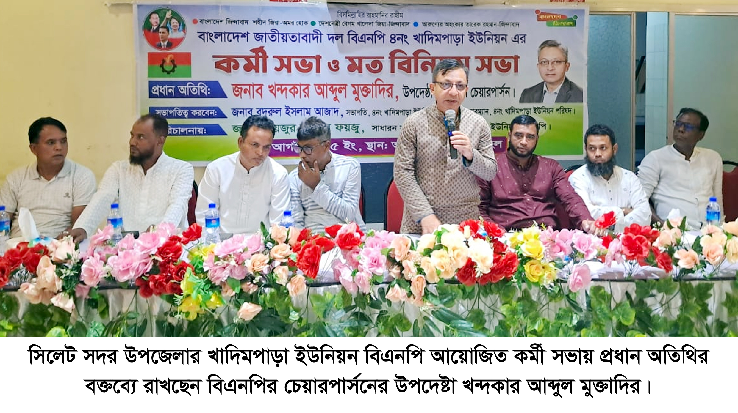 তিনি শুক্রবার (৮ আগস্ট) বিকেলে সিলেট সদর উপজেলার খাদিমপাড়া ইউনিয়ন বিএনপি আয়োজিত পীরের বাজারস্থ একটি স্থানীয় কমিনিউটি সেন্টারে কর্মী সভায় প্রধান অতিথির বক্তব্যে উপরোক্ত কথাগুলো বলেন।