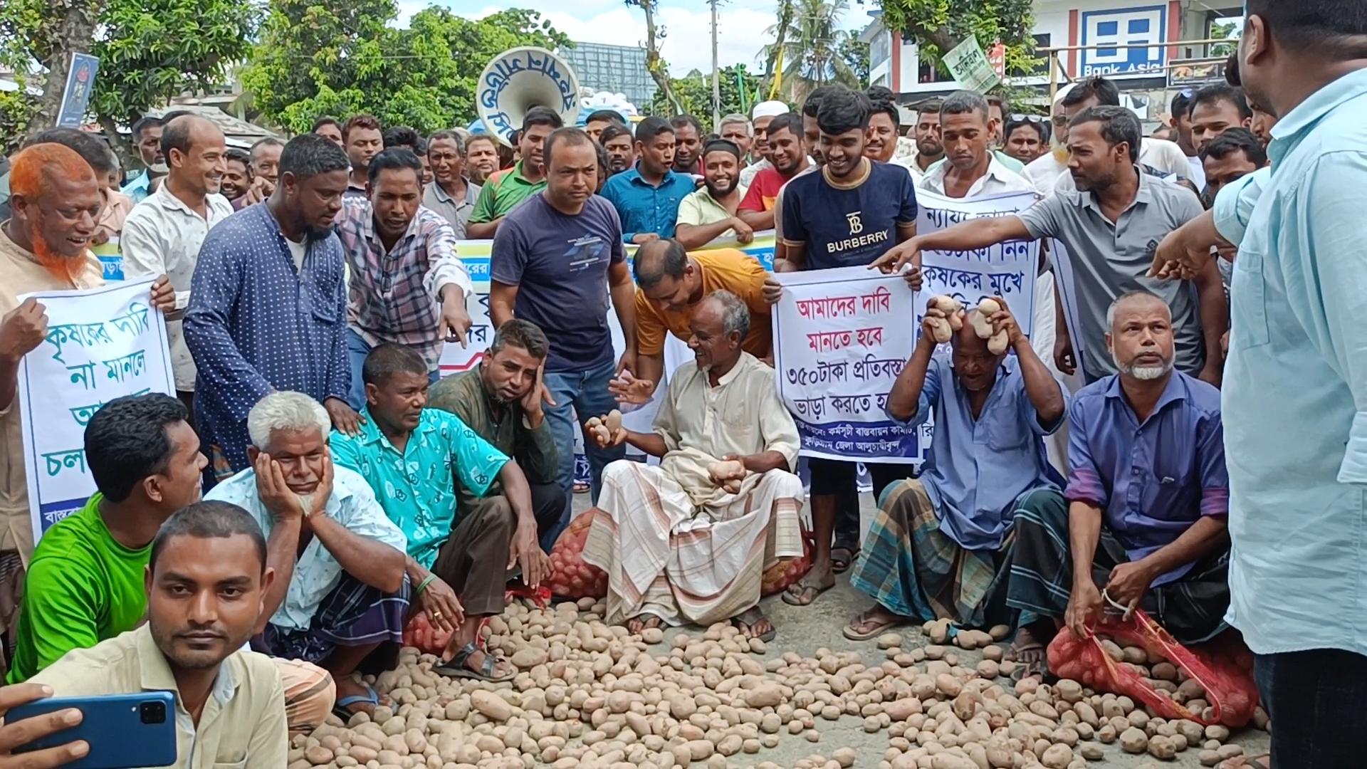 ভাড়া বৃদ্ধির প্রতিবাদে কুড়িগ্রামে রাস্তায় আলু ফেলে অবরোধ