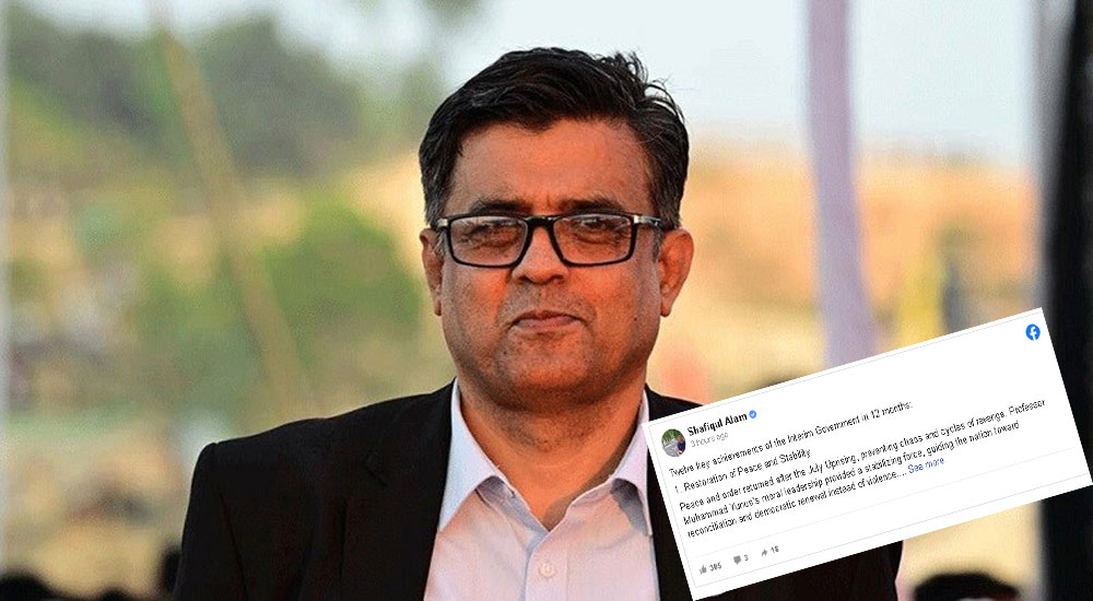 অনলাইন ডেস্ক: ৫ আগস্ট ফ্যাসিস্ট শেখ হাসিনা পালিয়ে যাওয়ার পর ৮ আগস্ট গঠিত হয় অন্তর্বতী সরকার। আগামীকাল শুক্রবার দায়িত্ব নেওয়ার এক বছর পূর্ণ হতে যাচ্ছে। এই সময়ে নানা চড়াই-উৎরাই পার করা সরকার কী কী সফলতা পেয়েছে, তার একটি তালিকা করেছেন অন্তর্বর্তী সরকারের প্রধান উপদেষ্টার প্রেস সচিব শফিকুল আলম।