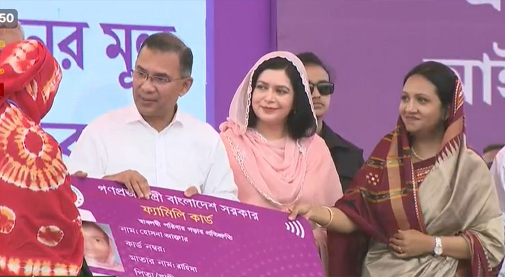 তারেক রহমান বলেন, ‘নারীদের অর্থনৈতিকভাবে সাবলম্বী করতে চায় সরকার। তারই অংশ হিসেবে এই ফ্যামলি কার্ড। নারীদের অর্থনৈতিকভাবে ক্ষমতাসীন করা না গেলে দেশকে এগিয়ে নেওয়া সম্ভব নয়।’