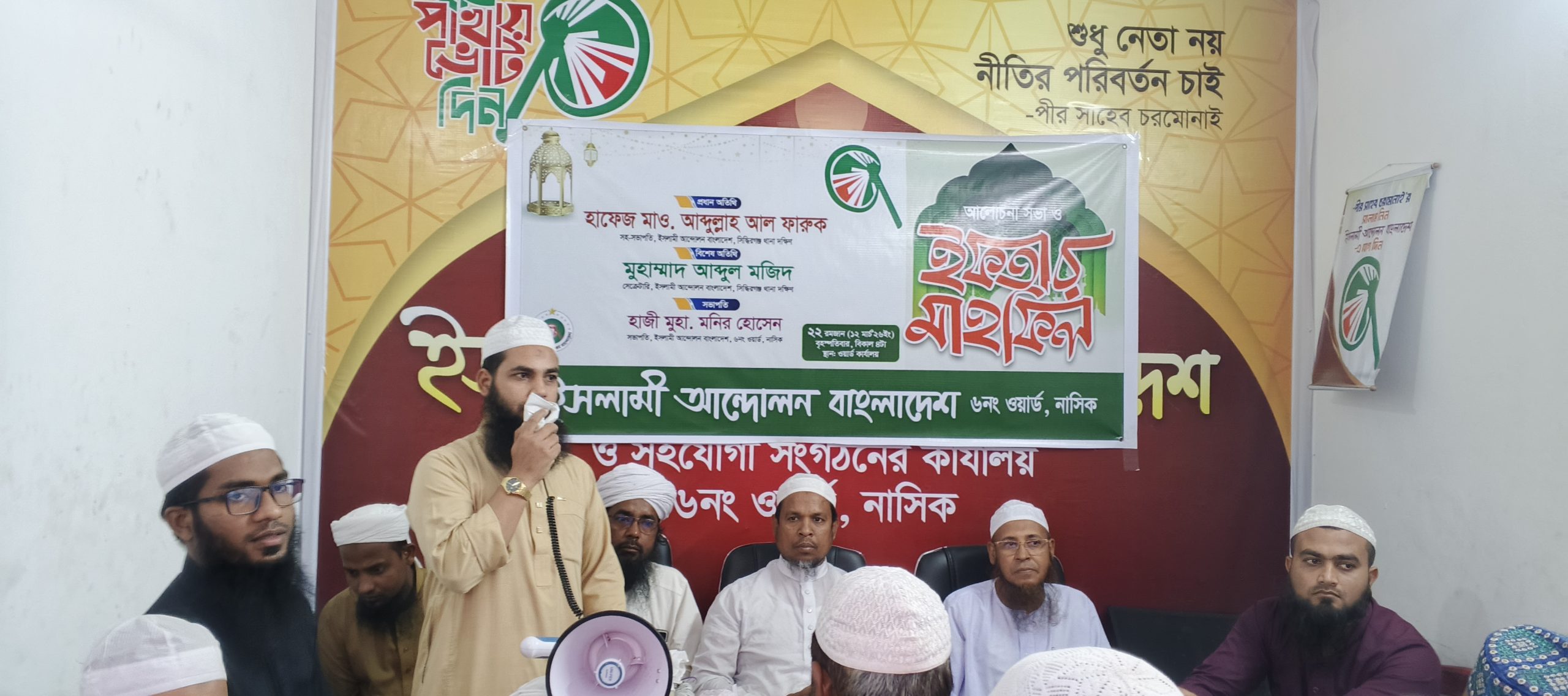 বৃহস্পতিবার বিকাল ৪টায় ইসলামী আন্দোলন বাংলাদেশ ৬নং ওয়ার্ডের আলোচনা সভা ও ইফতার মাহফিলের প্রধান অতিথির বক্তব্যে তিনি এসব কথা বলেন। এসময় উপস্থিত ছিলেন, ইসলামী আন্দোলন বাংলাদেশ সিদ্ধিরগঞ্জ থানা দক্ষিণের সহ-সভাপতি হাফেজ মাও. আব্দুল্লাহ আল ফারুক, সেক্রেটারি আ. মজিদ, ওয়ার্ড সভাপতি হাজী মনির হোসেনের সভাপতিত্বে আরও উপস্থিত ছিলেন, সেক্রেটারি হাফেজ বেলাল, প্রশিক্ষণ সম্পাদক হুমায়ুন কবির, যুব নেতা আরিফ, ছাত্র নেতা আব্দুল্লাহ প্রমুখ নেতৃবৃন্দ।