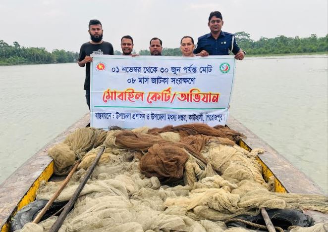 কাউখালীতে অভিযান চালিয়ে অবৈধ চরঘেরা জাল জব্দ