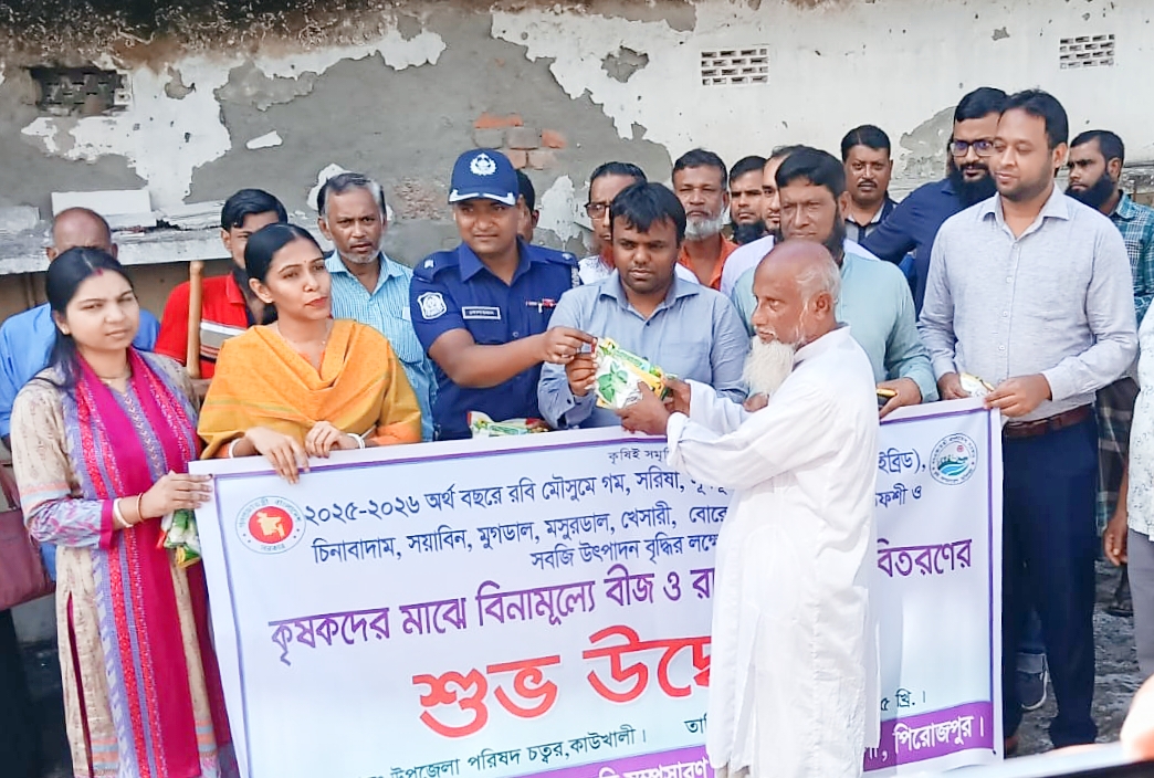 কাউখালী (পিরোজপুর) সংবাদদাতা: পিরোজপুরের কাউখালীতে ক্ষুদ্র ও প্রান্তিক কৃষকদের মধ্যে বিনামূল্যে বীজ এবং রাসায়নিক সার বিতরণ করা হয়েছে। উপজেলা প্রশাসন এবং কৃষি অধিদপ্তরের যৌথ উদ্যোগে, বৃহস্পতিবার (৩০ অক্টোবর) দুপুরে কৃষি অফিস চত্বরে এ সার বীজ বিতরন করা হয়। উপজেলা নির্বাহী অফিসার (ইউএনও) ও কৃষি পূর্ণবাসন বাস্তবায়ন কমিটির সভাপতি স্বজল মোল্লা প্রধান অতিথি হিসেবে এ সার ও বীজ বিতরন করেন।