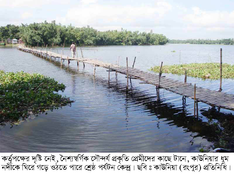 সারওয়ার আলম মুকুল, কাউনিয়া (রংপুর) প্রতিনিধি ঃ রংপুরের কাউনিয়া উপজেলায় শান্ত শ্যামল সুবজে ঘেরা ঐতিহাসিক ধুমনদী। ধুম নদীর নৈশ্যস্বর্গিক সৌন্দর্য প্রকৃতি প্রেমীদের কাছে টানে। শীত গরম যে কোন পরিবেশ এখানে সমাগম ঘটে সব বয়সের মানুষের। তরুণ-তরুণীদের এলাকাটি সব চেয়ে প্রিয়।