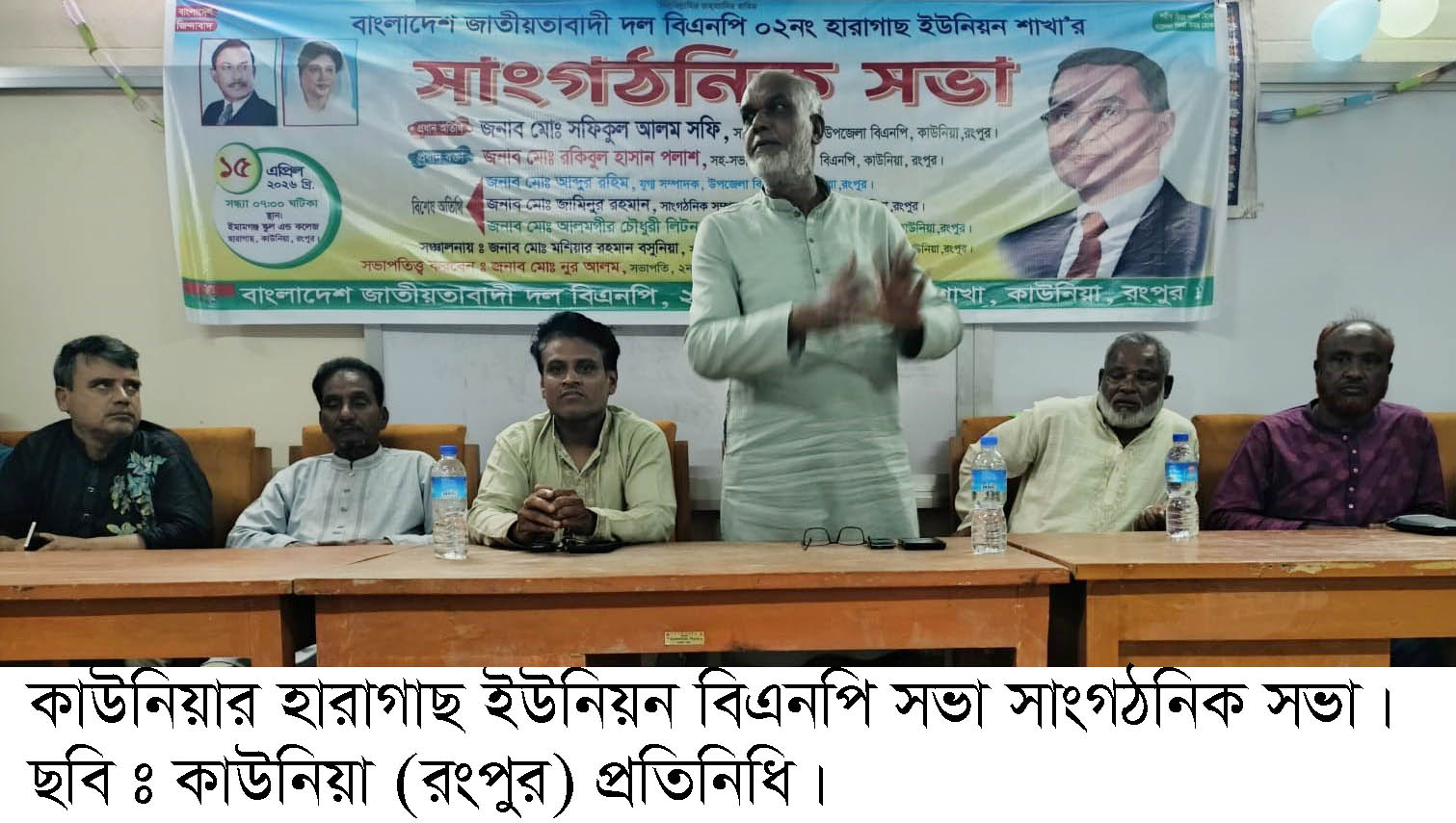 কাউনিয়া (রংপুর) প্রতিনিধি ঃ কাউনিয়ার হারাগাছ ইউনিয়ন বিএনপির উদ্যোগে সাংগঠনিক আলোচনা সভা বুধবার রাতে ইমামগঞ্জ স্কুল এন্ড কলেজ হল রুমে ইউনিয়ন বিএনপির সভাপতি নুর আলমের সভাপতিত্বে অনুষ্ঠিত হয়।