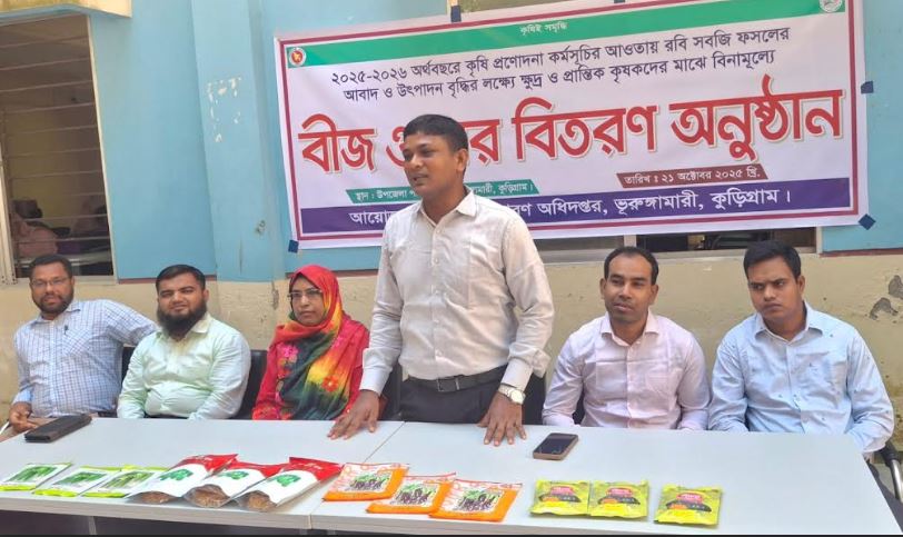 অনিরুদ্ধ রেজা, কুড়িগ্রামঃকুড়িগ্রামের ভুরুঙ্গামারী উপজেলায় সরকারের কৃষি প্রণোদনা কর্মসুচির আওতায় কৃষকদের মাঝে বিনামূল্যে সবজি, ফসলের বীজ ও সার বিতরণ করা হয়েছে।