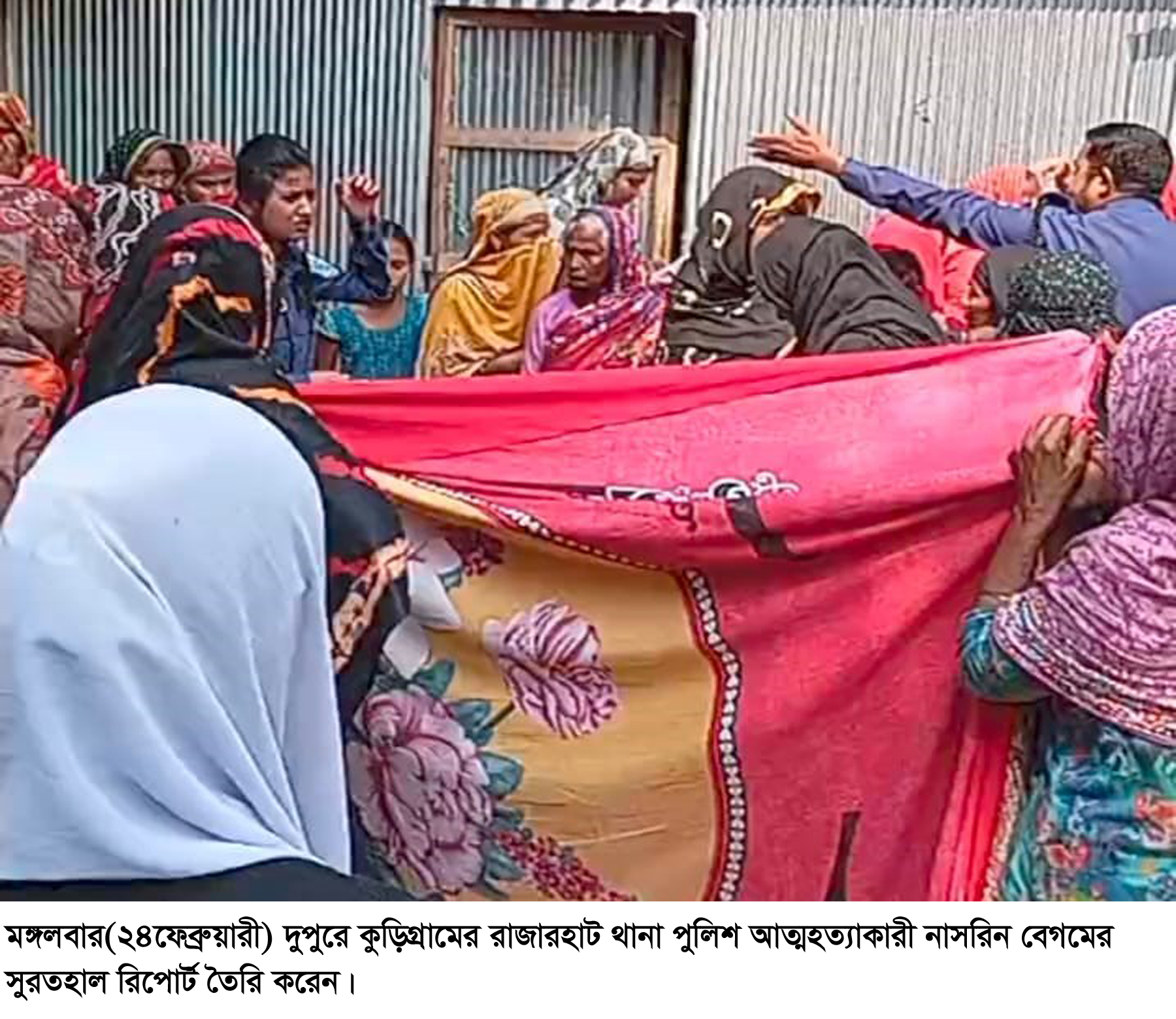খবর পেয়ে রাজারহাট থানা পুলিশেরএকটি দল ঘটনাস্থলে পৌঁছে মরদেহ উদ্ধার করে। পরে সুরতহাল প্রতিবেদন তৈরি করে মরদেহ থানায় নিয়ে আসা হয়।স্থানীয়দের ধারণা, পারিবারিক কলহের জেরে স্বামীর সঙ্গে মান-অভিমানের কারণে তিনি আত্মহত্যার পথ বেছে নিতে পারেন।