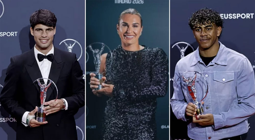 ‘খেলাধুলার অস্কার’ খ্যাত লরিয়াস বর্ষসেরা পুরস্কার অনুষ্ঠানে দাপট দেখিয়েছে টেনিস। শীর্ষ দুই পুরস্কারের দুটিই নিজেদের করে নিয়েছেন দুই টেনিস তারকা। বর্ষসেরা পুরুষ ক্রীড়াবিদ নির্বাচিত হয়েছেন স্প্যানিশ টেনিস তারকা কার্লোস আলকারাজ এবং বর্ষসেরা নারী ক্রীড়াবিদের পুরস্কার জিতেছেন আরিনা সাবালেঙ্কা।