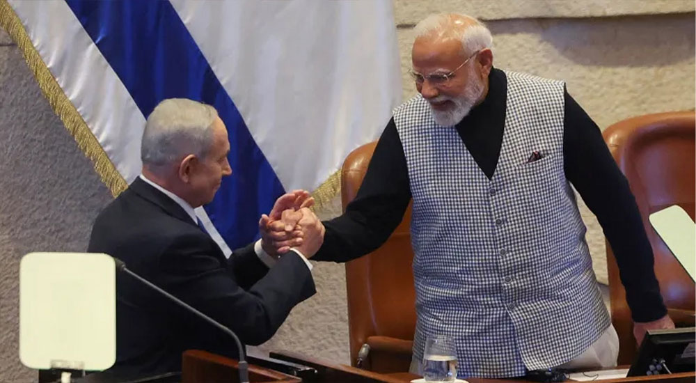 নেতানিয়াহুর সঙ্গে বৈঠক শেষে ইসরাইলি পার্লামেন্টে ভাষণ দিতে যান ভারতের প্রধানমন্ত্রী। নরেন্দ্র মোদি তার ভাষণে ২০২৩ সালের ৭ অক্টোবরের হামাসের হামলার শিকার পরিবারগুলোর প্রতি গভীর সমবেদনা জানান। তবে দীর্ঘ ভাষণের কোথাও গাজায় নিহত হাজার হাজার শিশু ও নিরপরাধ মানুষের কথা একবারও উল্লেখ করেননি।