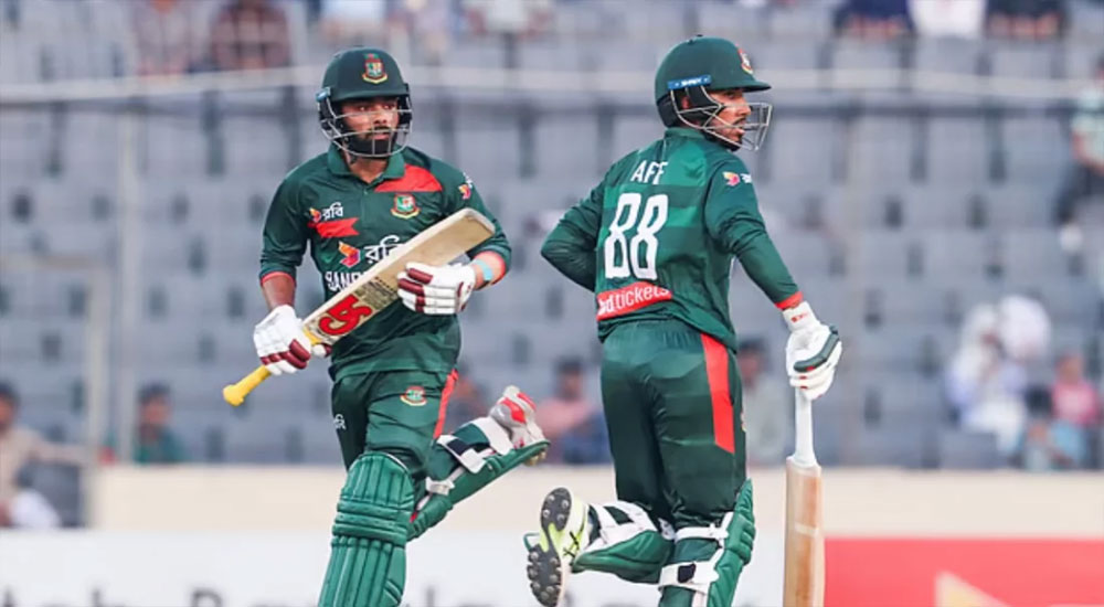 বাংলাদেশ ২৪৮ রানের লক্ষ্যে নেমে শুরুতে বিপদে পড়ে। ২১ রানের মধ্যে তানজিদ হাসান তামিম ও নাজমুল হোসেন শান্ত আউট হন। সেখান থেকে দলকে টেনে তোলেন সাইফ ও লিটন। ৯৩ রানের জুটি গড়ার পথে সাইফ পঞ্চাশ ছুঁলেও তার পথে হাঁটতে গিয়ে হোঁচট খান লিটন। দুজনের বিদায়ের পর হৃদয় ও আফিফ হোসেনের জুটিতে জয়ের পথে ছুটছিল বাংলাদেশ।