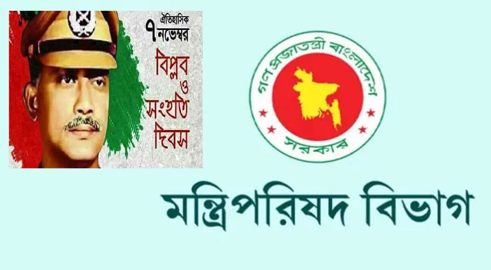 প্রতি বছর ৭ নভেম্বর ‘জাতীয় বিপ্লব ও সংহতি দিবস’ হিসেবে উদযাপনের সিদ্ধান্ত আনুষ্ঠানিকভাবে জানিয়েছে সরকার। এ বিষয়ে একটি পরিপত্র জারি করেছে মন্ত্রিপরিষদ বিভাগ।