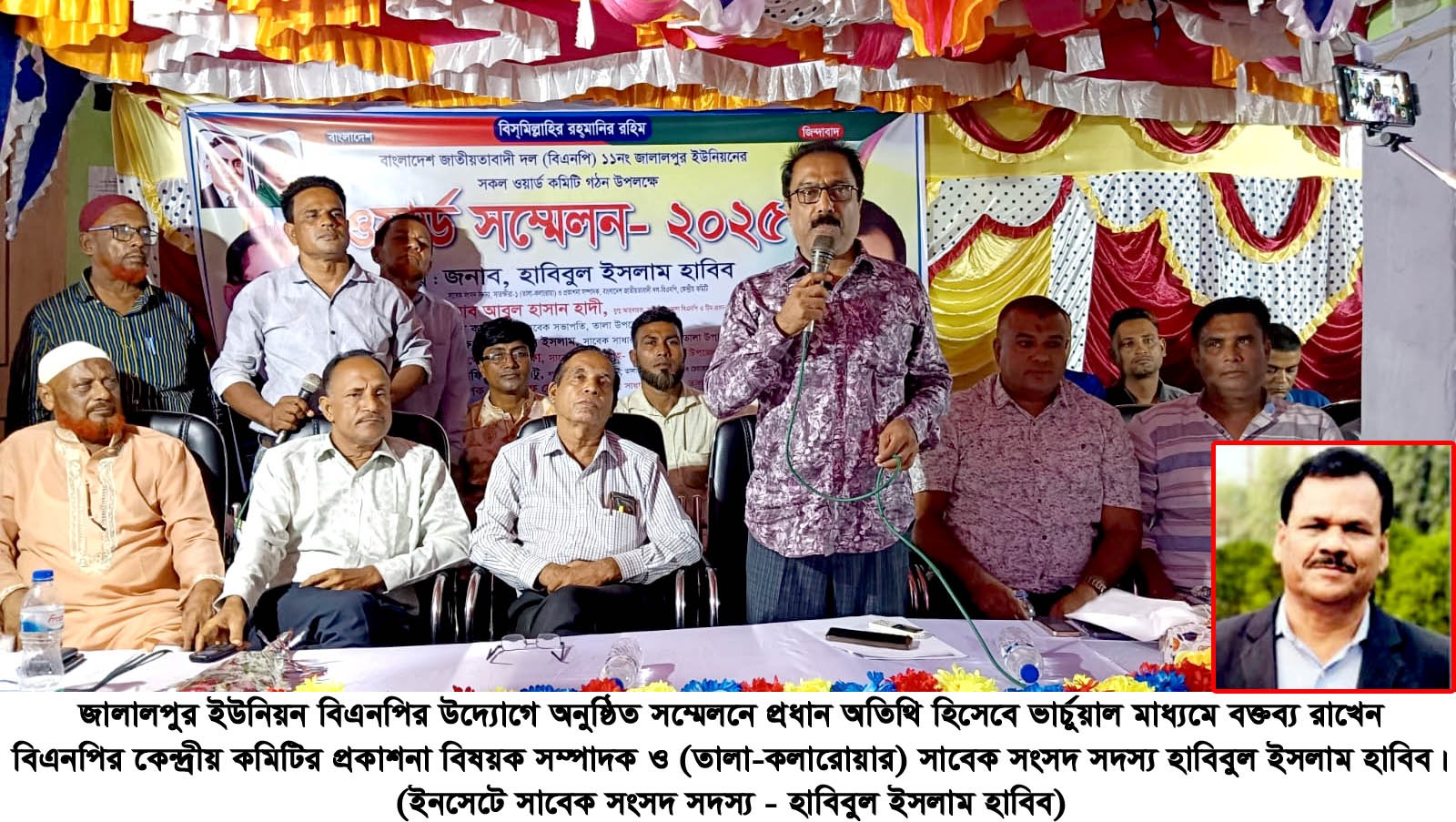 সম্মেলনে প্রধান অতিথি হিসেবে ভার্চুয়াল মাধ্যমে বক্তব্য রাখেন বিএনপির কেন্দ্রীয় কমিটির প্রকাশনা বিষয়ক সম্পাদক ও ( তালা-কলারোয়ার) সাবেক সংসদ সদস্য হাবিবুল ইসলাম হাবিব।