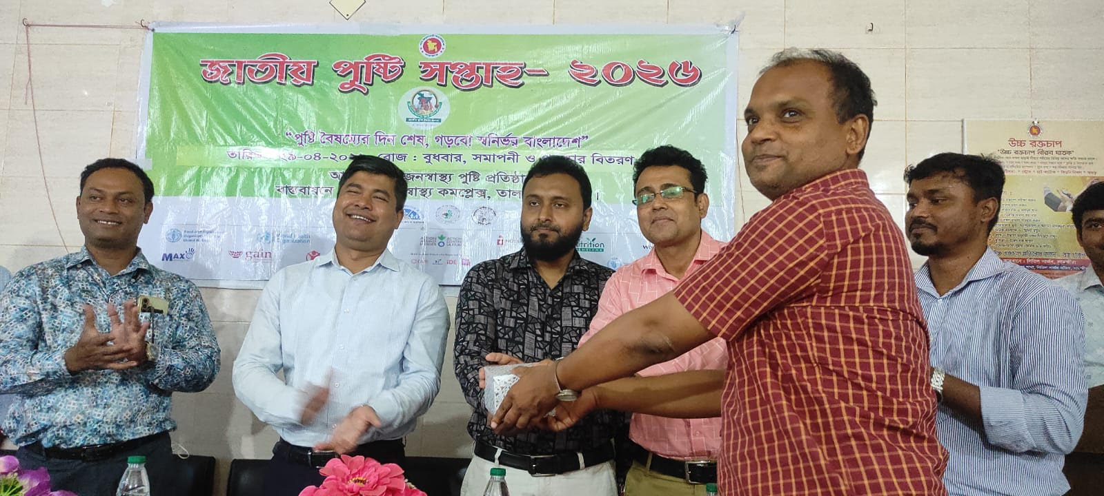 তালা প্রতিনিধি- সাতক্ষীরার তালায় পুষ্টি বিষয়ক বিভিন্ন অনুষ্ঠানের মধ্য দিয়ে ‘জাতীয় পুষ্টি সপ্তাহ-২০২৬’ এর সমাপনি ও পুরষ্কার বিতরণ অনুষ্ঠিত হয়। বুধবার (২৯ এপ্রিল) সকাল ১১ টায় তালা উপজেলা স্বাস্থ্য কমপ্লেক্সের হলরুমে পুরষ্কার বিতরণ অনুষ্ঠানে সভপতিত্ব করেন উপজেলা নির্বাহী অফিসার (ভারপ্রাপ্ত) রাহাত খান। তালা স্বাস্থ্যকমপ্লেক্সের মেডিকেল অফিসার ডা. সবুজ বিশ্বাসের পরিচালনায় অনুষ্ঠানে স্বাগত বক্তব্য রাখেন উপজেলা স্বাস্থ্য কমপ্লেক্সের অর্থপেডিক্স বিশেষজ্ঞ ডাঃ জ্যোতির্ময় সরকার। আমন্ত্রিত অতিথি হিসাবে উপস্থিত ছিলেন উপজেলা প্রাণিসম্পদ কর্মকর্তা ডাঃ মাছুম বিল্লাহ, উপজেলা পরিবার পরিকল্পনা কর্মকর্তা মোঃ কামাল হোসেন, উপজেলা প্রাথমিক শিক্ষা অফিসার ( ভারপ্রাপ্ত) সন্তোষ কুমার মন্ডল,মাধ্যমিক শিক্ষা অফিসের একাডেমিক সুপারভাইজার প্রভাস কুমার দাস,আরএমও ডাঃ খালিদ হাসান নয়ন, ডাঃ মোখলেছুর রহমান, শহীদ কামেল মডেল হাইস্কুলের প্রধান শিক্ষক গাজী জাহিদুর রহমান, তালা প্রেসক্লাবের অর্থ সম্পাদক এস এম মোতাহিরুল হক শাহিন প্রমুখ। এ সময় পুরস্কারপ্রাপ্ত ছাত্র-ছাত্রী, অভিভাবক এবং শিক্ষকবৃন্দ, হাসপাতালের স্বাস্থ্যকর্মীবৃন্দ উপস্থিত ছিলেন। এবারের পুষ্টি সপ্তাহের প্রতিপাদ্য বিষয় ছিল “পুষ্টি বৈষম্যের দিন শেষ, গড়বো স্বনির্ভর বাংলাদেশ”। বক্তারা বলেন, একটি মেধাবী ও সুস্থ জাতি গঠনে সুষম খাবারের কোনো বিকল্প নেই। বিশেষ করে শিশু ও গর্ভবতী মায়েদের সঠিক পুষ্টি নিশ্চিত করতে জনসচেতনতা বৃদ্ধির ওপর গুরুত্বারোপ করেন। মানুষকে পুষ্টিগুণ সম্পন্ন দেশীয় খাবার গ্রহণে উদ্বুদ্ধ করতে বিভিন্ন দিকনির্দেশনা দেওয়া হয়। কর্মসূচি বাস্তবায়নে ইউনিসেফ (UNICEF), বিশ্ব স্বাস্থ্য সংস্থা (WHO), সেভ দ্য চিলড্রেন এবং গেইন (GAIN) সহ বিভিন্ন আন্তর্জাতিক উন্নয়ন সংস্থা সহযোগিতা প্রদান করছে। সপ্তাহব্যাপী এই কর্মসূচিতে বিভিন্ন পুষ্টি প্রদর্শনী,স্কুলের ছাত্র- ছাত্রীদের মাঝে পুষ্টিকর খাবার বিষয়ে কুইজ ও রচনা প্রতিযোগিতা, পরামর্শমূলক ক্যাম্পেইন,হাসপাতালে পুষ্টিকর খাবার বিতরণ,শিশুদের মাঝে পুষ্টিকর খাবার পরিবেশন ও পুরস্কার বিতরণ করা হয়।