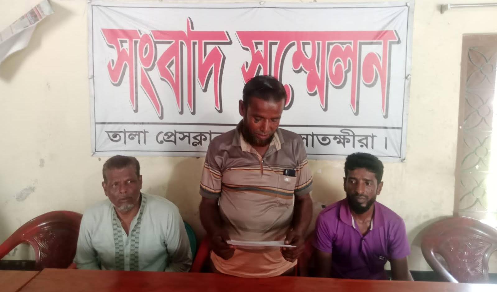 তালা (সাতক্ষীরা) প্রতিনিধি: সাতক্ষীরার তালায় মৎস্য ঘেরের বাসা ভাঙচুর, লুটপাট, হত্যার হুমকি ও চরম নিরাপত্তাহীনতার অভিযোগে তালা প্রেস ক্লাবে সংবাদ সম্মেলন অনুষ্ঠিত হয়েছে।বুধবার (২২ এপ্রিল) সকালে তালা প্রেস ক্লাবে লিখিত বক্তব্য পাঠ করেন উপজেলার জেয়ালা নলতা গ্রামের তালা সদর ইউনিয়নের ২ নম্বর ওয়ার্ড সদস্য নজরুল ইসলাম মোড়ল।