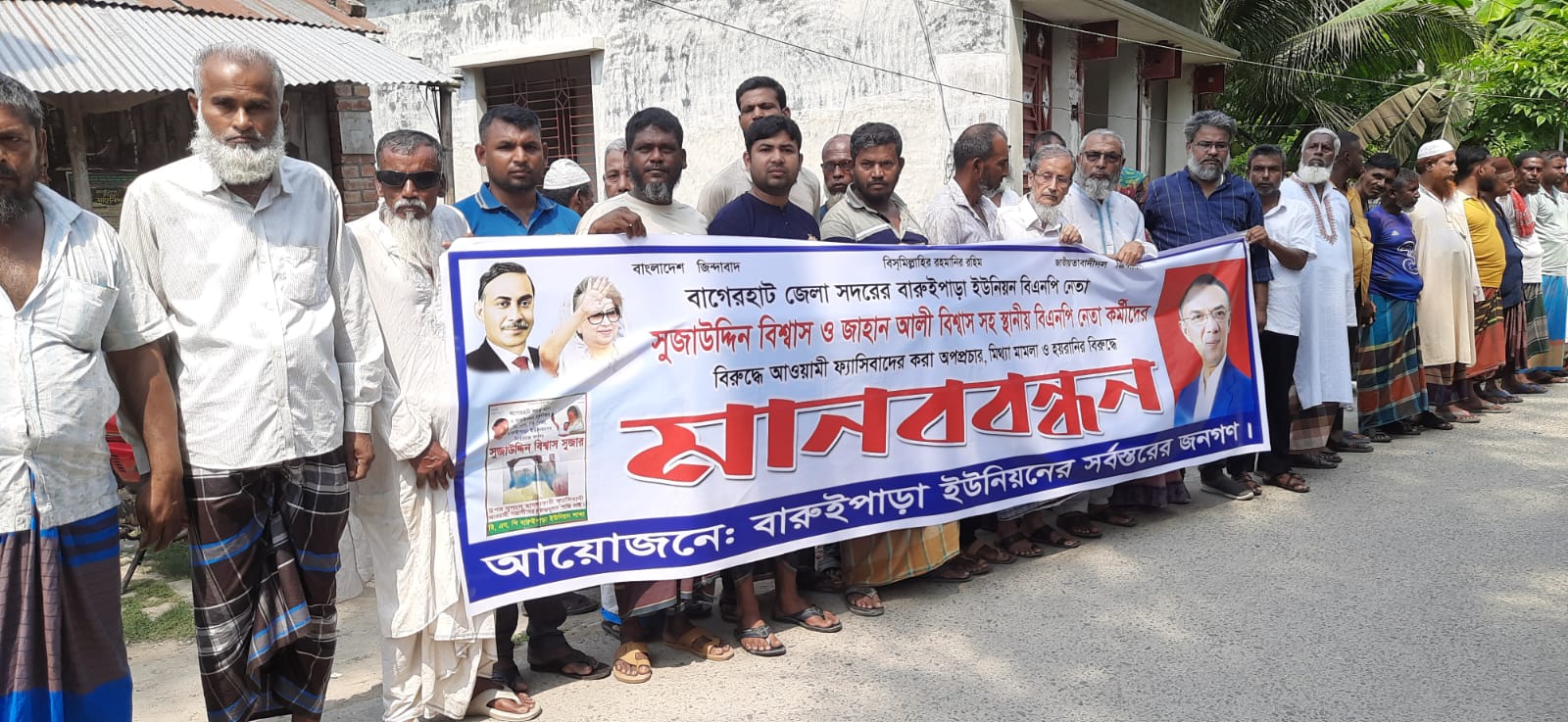 মানববন্ধনে বক্তব্য দেন বারুইপাড়া ইউনিয়ন বিএনপির সাধারণ সম্পাদক এম এ মান্নান, তাহের মল্লিকের নির্যাতনের শিকার সুজা উদ্দিন বিশ্বাস, আব্দুল আজিজ শেখ, হাবিবুর রহমান পাইক, মাজেদ শেখ, সাফিয়া বেগম, অমিত কুমার পাল প্রসাদ কুমার পাল প্রমুখ।