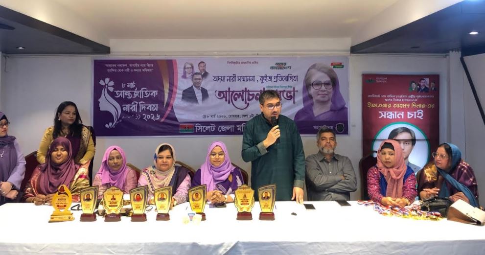 রোববার দুপুরে আন্তর্জাতিক নারী দিবস উপলক্ষে সিলেট জেলা মহিলা দল আয়োজিত অদম্য নারী সম্মাননা, কুইজ প্রতিযোগিতার পুরষ্কার বিতরণ ও আলোচনা সভায় প্রধান অতিথির বক্তব্যে তিনি এসব কথা বলেন।