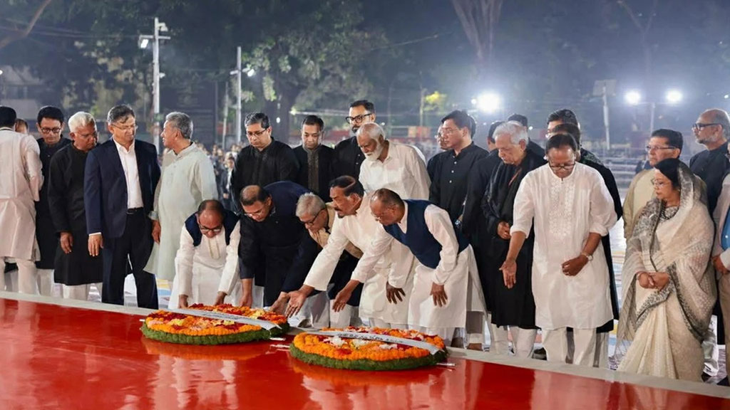 শুক্রবার রাত ১২টা ১ মিনিটে প্রথমে রাষ্ট্রপতি মো. সাহাবুদ্দিন শহীদ মিনারে পুষ্পস্তবক অর্পণ করেন। এরপরই পুষ্পস্তবক অর্পণ করেন প্রধানমন্ত্রী তারেক রহমান। পুষ্পস্তবক অর্পণের পর তিনি ভাষা আন্দোলনের বীর শহীদদের স্মৃতির প্রতি গভীর শ্রদ্ধা জানিয়ে কিছুক্ষণ নীরবে দাঁড়িয়ে থাকেন।