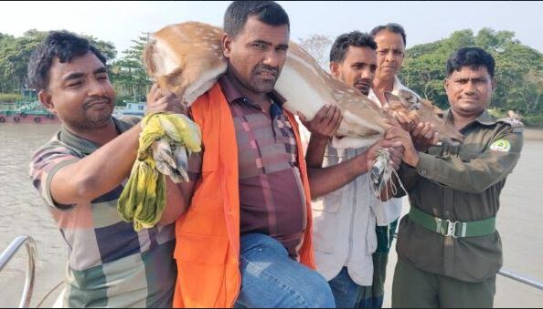 এস. এম. সাইফুল ইসলাম কবির, সুন্দরবন থেকে ফিরে: দক্ষিণ-পশ্চিমাঞ্চলের গর্ব, বিশ্বের সর্ববৃহৎ ম্যানগ্রোভ বনাঞ্চল ও বিশ্ব ঐতিহ্য সুন্দরবনের গভীর অরণ্য ছেড়ে লোকালয়ে ঢুকে পড়া একটি মায়াবী চিত্রা হরিণকে উদ্ধার করে আবারও বনে অবমুক্ত করেছে বনবিভাগ। বন নিয়ে কাজ করা স্বেচ্ছাসেবী সংগঠন সিপিজি (কমিউনিটি পেট্রোল গ্রুপ) ও ওয়াইল্ড টিমের সদস্যদের সহযোগিতায় বনরক্ষীরা শনিবার সকালে হরিণটি উদ্ধার করেন। ঘটনাটি ঘটেছে বাগেরহাটের শরণখোলা উপজেলার খুড়িয়াখালী গ্রামে।