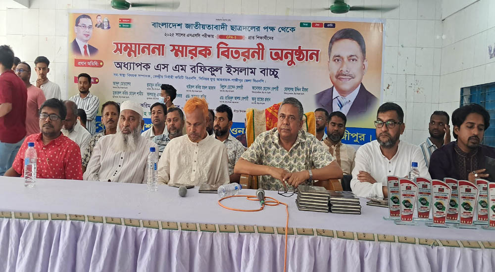 টি.আই সানি, শ্রীপুর (গাজীপুর) প্রতিনিধি: গাজীপুরের শ্রীপুরে ২০২৫ সালের এসএসসি পরীক্ষায় জিপিএ-৫ প্রাপ্ত শিক্ষার্থীদের সম্মাননা স্মারক প্রদান করা হয়েছে। বাংলাদেশ জাতীয়তাবাদী ছাত্রদলের পক্ষ থেকে জন শিক্ষার্থীদের হাতে ৪’শ শিক্ষার্থীদের হাতে এ সম্মাননা স্মারক তুলে দেওয়া হয়। মঙ্গলবার (২৯ জুলাই) দুপুর ১২ টায় মাওনা চৌরাস্তা বেগম আয়েশা অডিটরিয়ামে তাদেরকে সম্মাননা দেওয়া হয়।