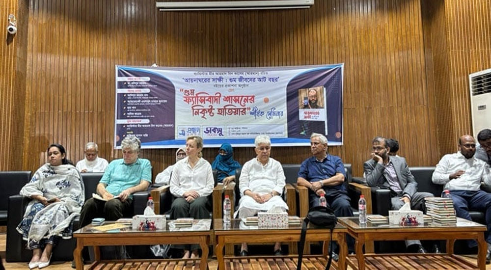 তিনি বলেন, ‘যদিও ফ্যাসিবাদ পরাজিত হয়েছে, কিন্তু এটি মাঝে মাঝেই ফিরে আসার চেষ্টা করে। তাই আমাদের মতপার্থক্য ভুলে ঐক্যবদ্ধ থেকে এই লড়াই চালিয়ে যেতে হবে।’