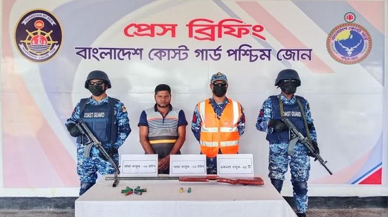 এস. এম সাইফুল ইসলাম কবির, বাগেরহাট : দক্ষিণ-পশ্চিমাঞ্চলের বিশ্বের সর্ববৃহৎ ম্যানগ্রোভ বনাঞ্চল মৎস্যভান্ডার নামে খ্যাতবিশ্ব ঐতিহ্য সুন্দরবনের উপকূলেরবাগেরহাটের মোংলায় কোস্ট গার্ডের অভিযানে সুন্দরবনের কুখ্যাত ডাকাত করিম শরীফ বাহিনীর এক সহযোগীকে আটক করা হয়েছে। অভিযানের সময় তার কাছ থেকে একটি একনলা বন্দুক, দুই রাউন্ড তাজা কার্তুজ ও ছয় রাউন্ড ফাঁকা কার্তুজ উদ্ধার করা হয়। আজ মঙ্গলবার (২৬ আগস্ট) সকালে বিষয়টি নিশ্চিত করেন কোস্ট গার্ড মিডিয়া কর্মকর্তা লেফটেন্যান্ট কমান্ডার সিয়াম-উল-হক।