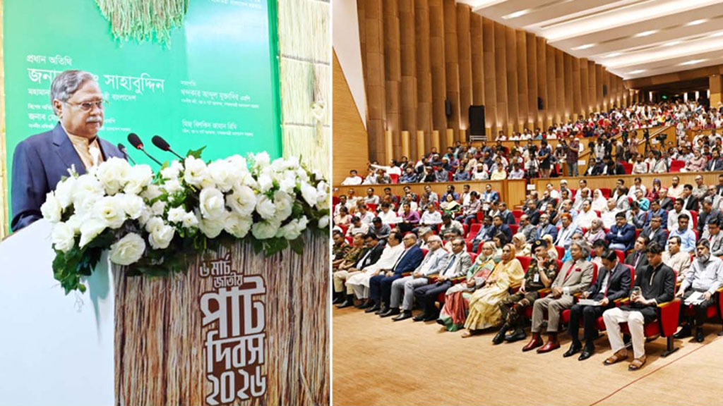 বাসস: রাষ্ট্রপতি মো. সাহাবুদ্দিন পাটপণ্যকে বিশ্ববাজারে ছড়িয়ে দিতে এবং নতুন সম্ভাবনার সুবর্ণ সুযোগকে কাজে লাগাতে সংশ্লিষ্ট সকলের প্রতি আহ্বান জানিয়েছেন।