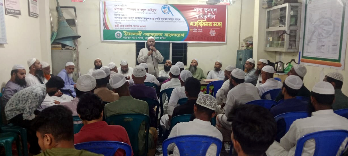 গতকাল রাতে ইসলামী আন্দোলন বাংলাদেশ ঢাকা মহানগর দক্ষিণের শাহবাগ থানা শাখার উদ্যোগে থানা তৃণমূল দায়িত্বশীলদের মতবিনিময় সভায় প্রধান অতিথির বক্তব্যে তিনি এসব কথা বলেন। শাহবাগ থানা সভাপতি হাজী মো. তকদির হোসেন রুবেলের সভাপতিত্বে এবং সেক্রেটারী হাজী কামরুল ইসলামের সঞ্চালনায় অনুষ্ঠিত অনুষ্ঠানে বিশেষ অতিথি ছিলেন দলের ঢাকা মহানগর দক্ষিণ সেক্রেটারি আলহাজ্ব আবদুল আউয়াল মজুমদার ও সহ-সাংগঠনিক সম্পাদক মুফতী আবদুল আহাদ। আলোচনায় অংশ নেন শাহবাগ থানার সিনিয়র সহ-সভাপতি হাজী মো. ফিরোজ খান, আলহাজ্ব আব্দুর রহমানসহ থানা ও সহযোগী সংগঠনের নেতৃবৃন্দ।